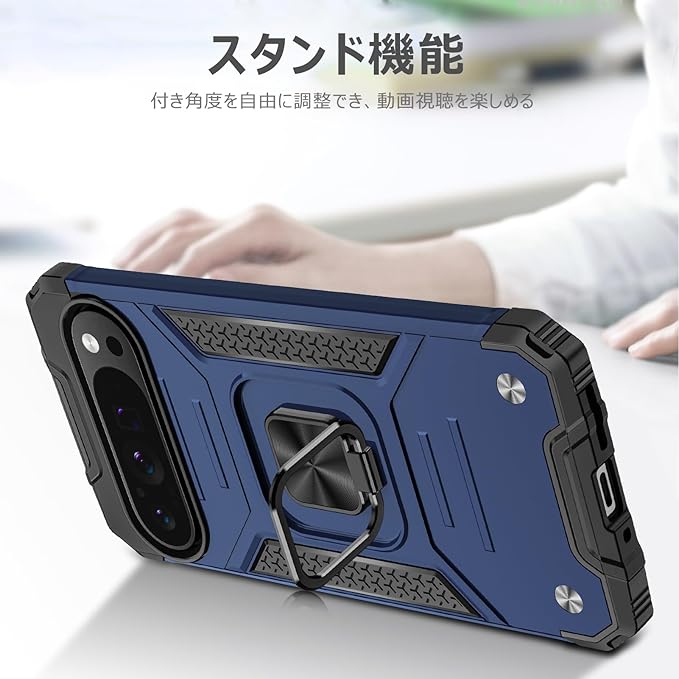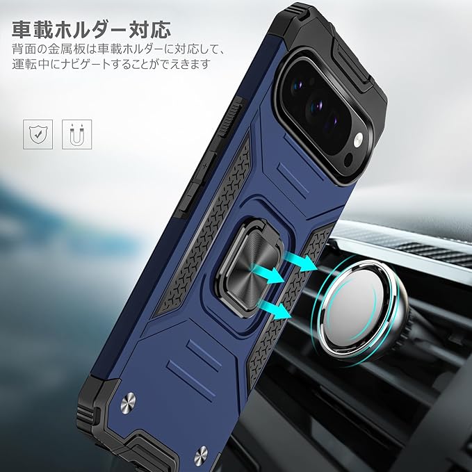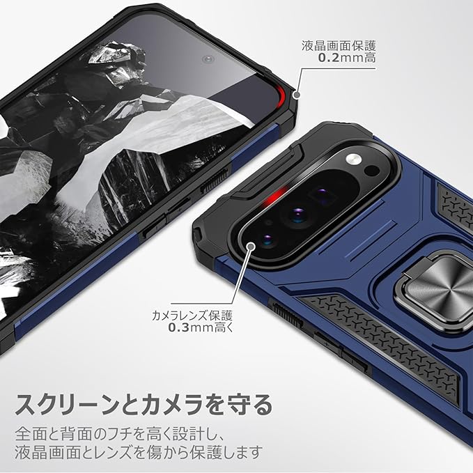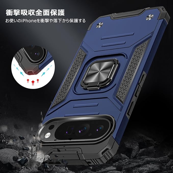 Google Pixel 9 Pro XL 用ケース リング 衝撃吸収 耐衝撃 TPU+PCバンパー 二重構造 米軍MIL規格 全面保護カバー 滑り防止 車載ホルダー対応 擦り傷防止 滑り止め 軽量 薄型 グーグル ピクセル 9 pro xl 用カバー 6.8インチ 指紋防止 耐久 おしゃれ 人気 携帯カバー 青 MZ64-136