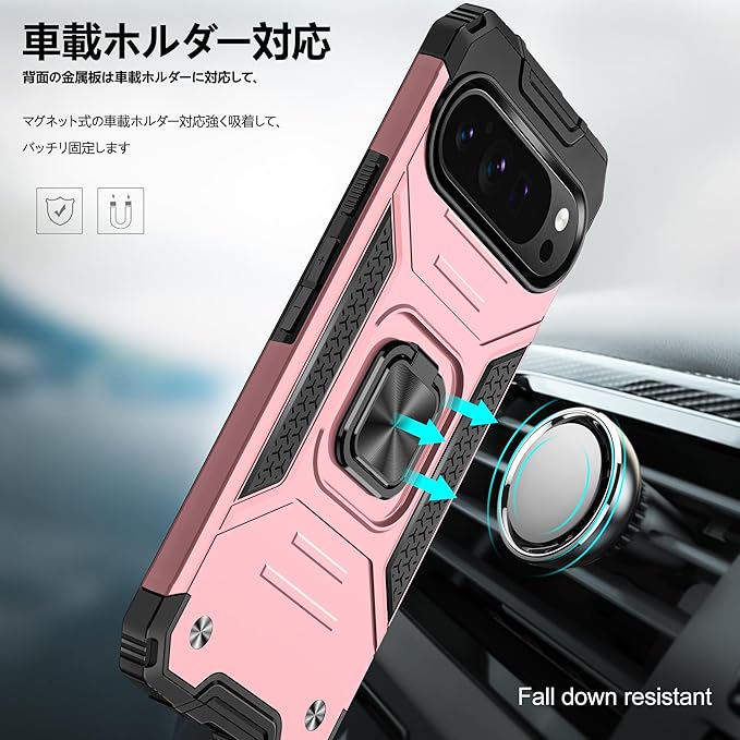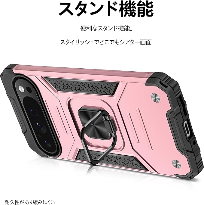 対応 Google Pixel 9 Pro XL 用の ケース リング付きカバー 耐衝撃 スタンド機能 車載ホルダー レンズ保護 ピクセル9Pro XL 用の スマホケース PC TPUバンパー 黄変防止 防塵 人気 落下防止 滑り止め 指紋防止 携帯カバー 6.8インチ ピンク A148