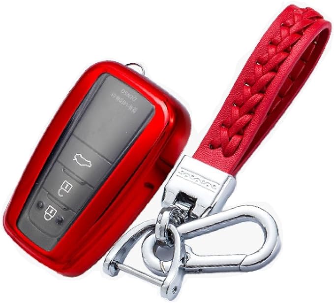 スマート キー ケース キーホルダー セット スマートキーカバー トヨタ車用 プリウス C-HR RAV4 86 ランクル プラド カムリ カローラ set (レッド)