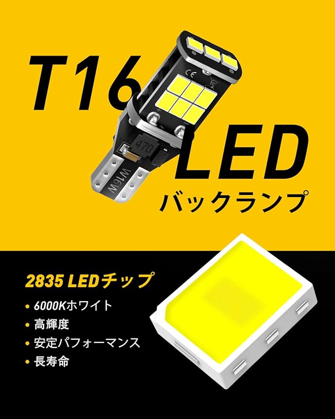 【T16/T15爆光LEDバルブ】明るい広範囲照射のバックランプ!高輝度のSMD2085LEDを15基搭載しており、3倍明るさアップの高輝度に達し、ムラ のない360 全方向拡散を実現します。ヒートセンサー搭載で熱対策が抜群なので安定した明るさを持続します。路面が車両手前から明るく、バック時の操作が快適です。また周辺歩行者や障害物をしっかり視認することができます。安全性が大幅に向上されます。