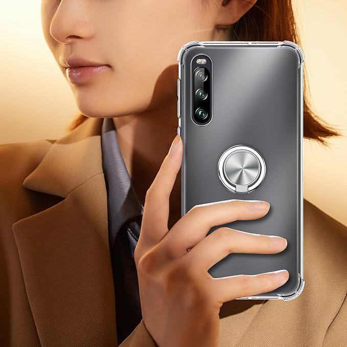 【スタンド機能】:ケースを横置きにするとスタンド機能になり、持たず動画鑑賞などを楽しむことができます。一指着る式で、指がリングに通り抜け、片手で携帯を操作でき、落下防止します。
