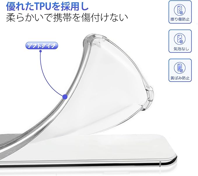 【防震耐衝撃・擦り傷指紋防止】本体への永続的な保護を提供します。環境に優しく、無毒無味の高品質TPU素材採用、ソフトシリコンエッジ、4つのエアスペースクッションコーナーあり、外部からの衝撃を吸収し、落下、衝突、衝撃、擦り傷、その他の損傷から携帯電話を強力に保護します。表面撥油性コーティング設計、つや消し、滑り止め効果あり、指紋防止、油汚れ防止、防汗、繊細な手触り感、爽やかな感触も与えます。