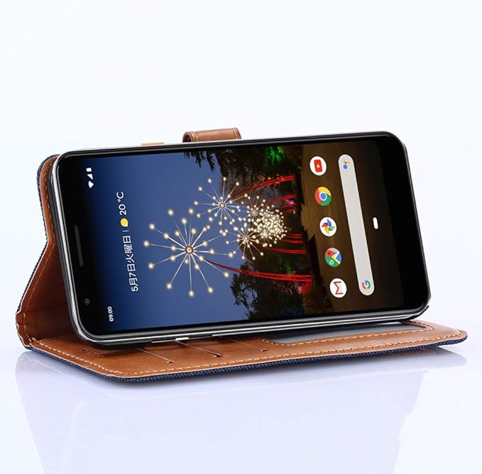 Google PIXEL 3A 通用ケース 手帳型 カウボーイ風 グーグルピクセル3a 手帳型 ケース手帳 デニム マグネット開閉式 京セラ ベイシオ Pixel 3A カバー 手帳型 ケース スタンド 耐衝撃 ケース ポーチ +[ タッチペン ](Pixel 3a, ライトブルー)