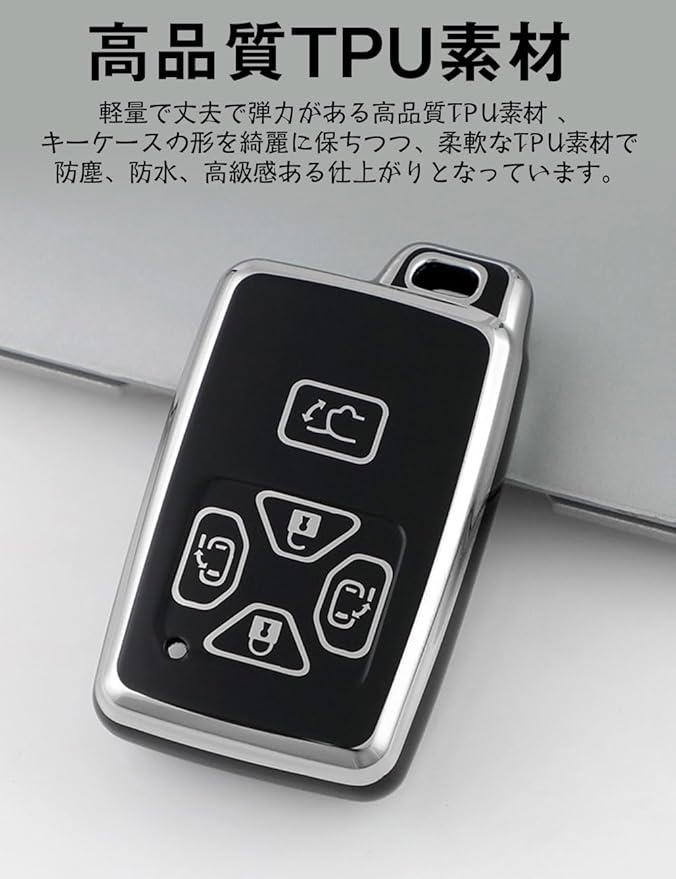 上質なTPU材料:このトヨタ用キーケースにはTPU素材を採用しており、軽さを確保した上で耐久性も備えています。 TPU素材のキーケースはオイル耐性、耐水性、カビ耐性、防塵性があります。豪華さを演出してくれます。本キーケースを取り付けるだけで愛車のスマートキーは高級車のキーに様変わりします。