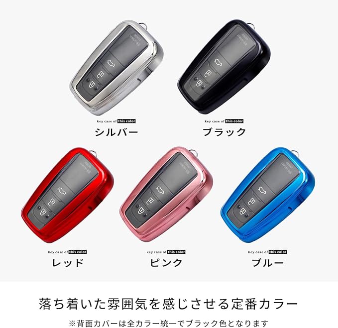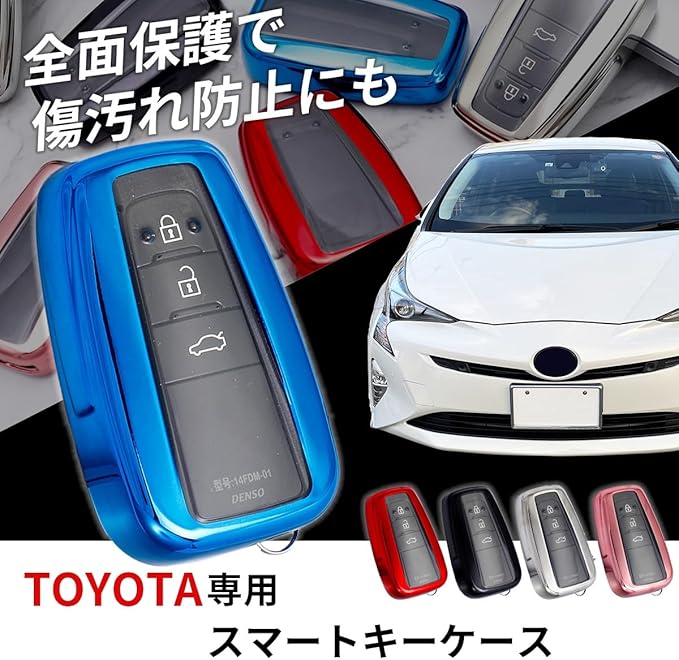 トヨタ製の車種に適合するスマートキーケースです。 光沢仕様で高級感をアップさせてくれます。 シルバー、ブラック、レッド、ブルー、ピンク ※背面カバーは全カラー統一でブラック色となります。 全面を保護する仕様のため傷からも守ってくれます。