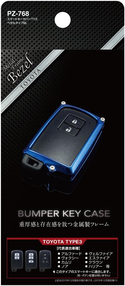 オール金属製 バンパータイプのキーケース トヨタ車スマートキーの専用カバー 金属の重厚感とガッシリとした保護性 装着したままマスターキーをはずせる 艶のあるブルーメタルタイプ