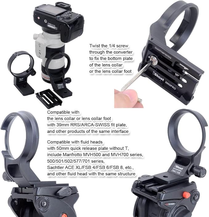 2. Tなしの50mmクイックリリースプレートを備えた流体ヘッドと互換性があり、Manfrotto MVH500およびMVH700シリーズ、500/501/502/577/701シリーズ、Sachtler ACE XL / FSB 4 / FSB 6 / FSB8などが含まれます。同じ構造の流体ヘッド。