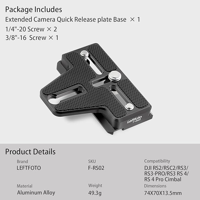Leftfoto 拡張カメラクイックリリースプレートベース DJI RS2/RSC2/RS3/RS3-PRO/RS3 RS 4/RS 4 Pro Cimbal用 アルカタイプスタンダード 1/4インチ 3/8インチネジ付き (連結バージョン)