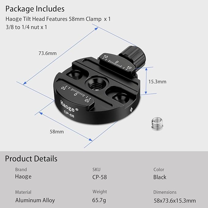 Haoge 58 mmスクリューノブクランプアダプタマウントクイックリリースQRプレートカメラ三脚Ballhead一脚ボールヘッドFit Arca Swiss
