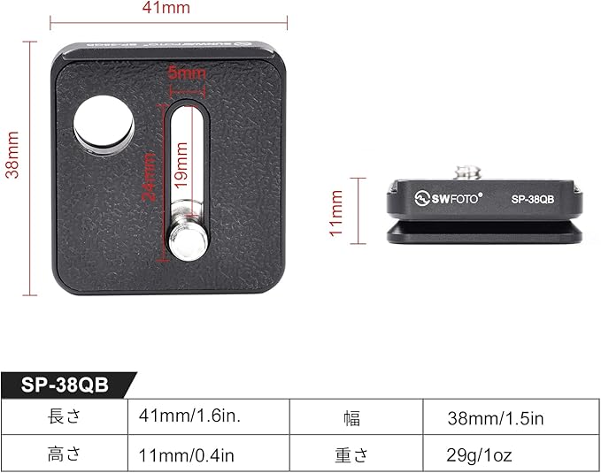 SWFOTO SP-38QB アルカスイス互換 rrs プレートarca swissカメラプレートQDマウン