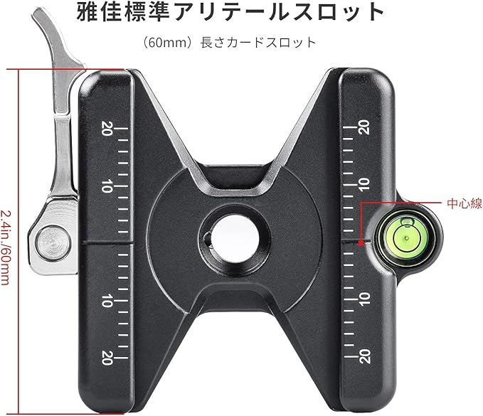 SLC-60Bユニバーサルタイプ雅佳クイックマウントクリップ座は、CNC精密加工、硬質陽極酸化処理されたT6061アルミニウムを本体とし、丈夫で耐久性があり、耐摩耗性と耐腐食性に優れています。