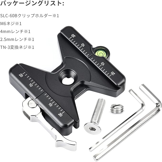 ✪パッケージングリスト:SLC-60B クリップホルダー※1、M6ネジ※1、4mmレンチ※1、2.5mmレンチ※1、TN-3変換ネジ※1、R04パイルバック※1