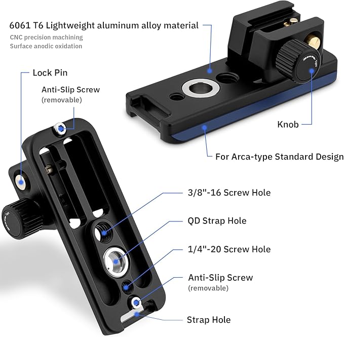 軽量アルミニウム合金素材、CNC精密機械加工、表面陽極酸化、安定性を確保しながら重量を最小限に抑える中空設計。