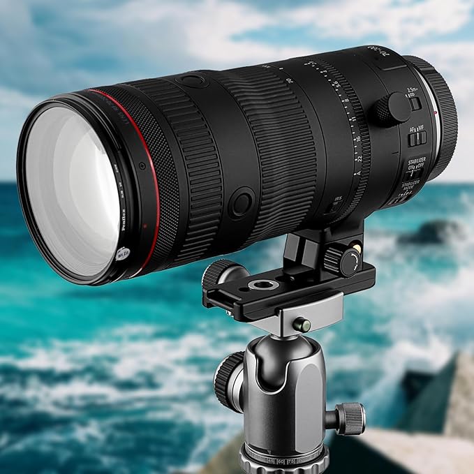 HaogeのLF-R720Zレンズフットは、Cacon RF 70-200mm F2.8 L IS USM Zレンズの交換用フットです。 Arca-Swiss規格のボールヘッド、クランプ、パノラマヘッドにレンズを取り付けることができるアルカ互換ダブテールが特徴です。